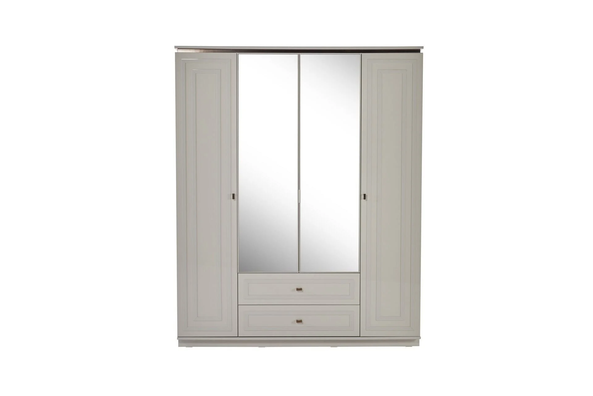 - Estetică: Fronturile sunt finisate în nuanțe lucioase (Frost Grey), putând fi configurate cu oglinzi centrale pentru a mări vizual dormitorul sau cu panouri pline din MDF pentru un aspect minimalist.