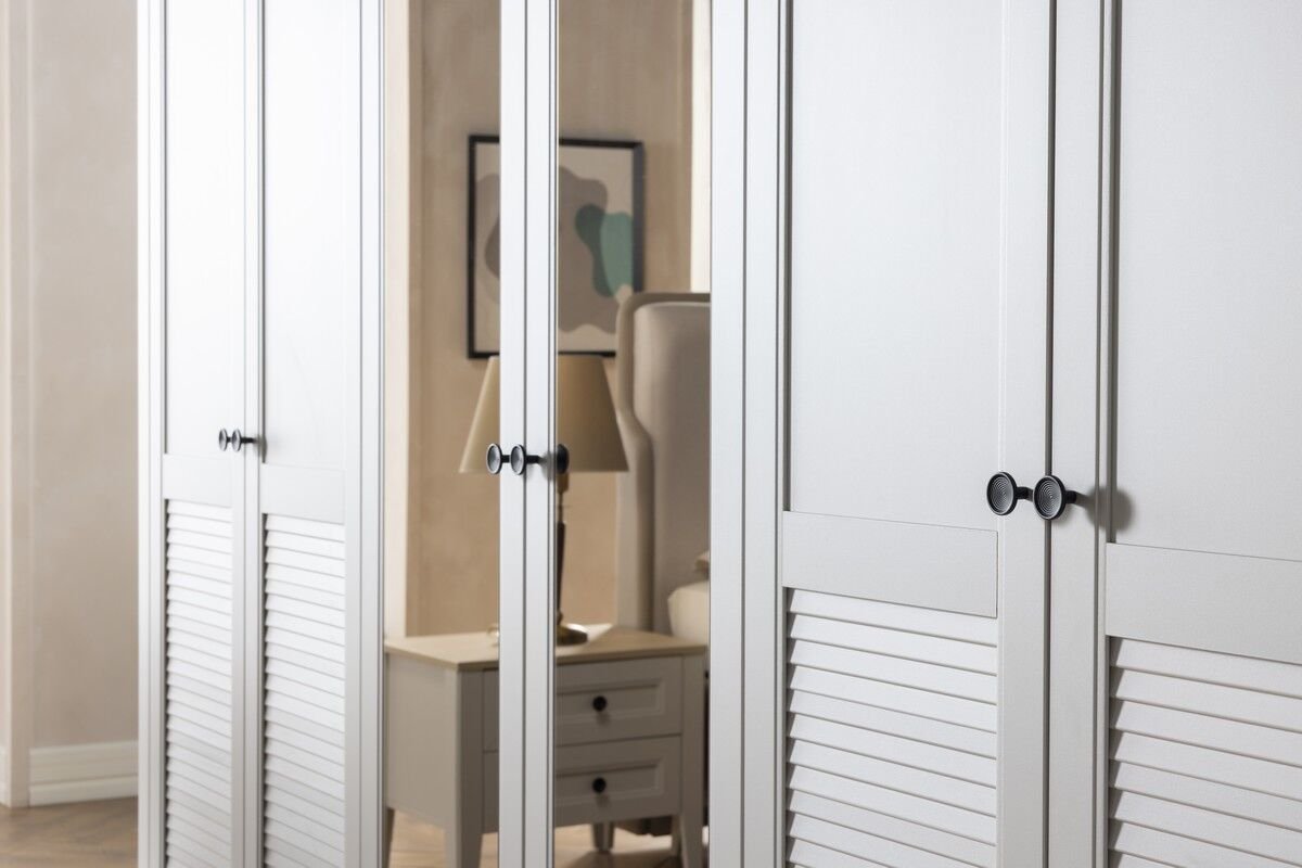 Elegant si modern, Dressingul Fiona cu 6 usi si oglinda disponibila in finisaj fume, reprezinta solutia ideala pentru a da un aspect contemporan dormitorului. Caracterizat printr-un design minimalist si oglinda mare, dressingul este o completare moderna pentru amenajarea spatiului de dormit. Compartimentarea interioara este una standard, incluzand cateva etajere in partea laterala , patru bare pentru umerase prevazute cu sistem LED si doua casete. Rafturile și compartimentele îngrijite din spatele ușilor vă permit să vă organizați cu ușurință bunurile și să optimizați utilizarea dulapului.