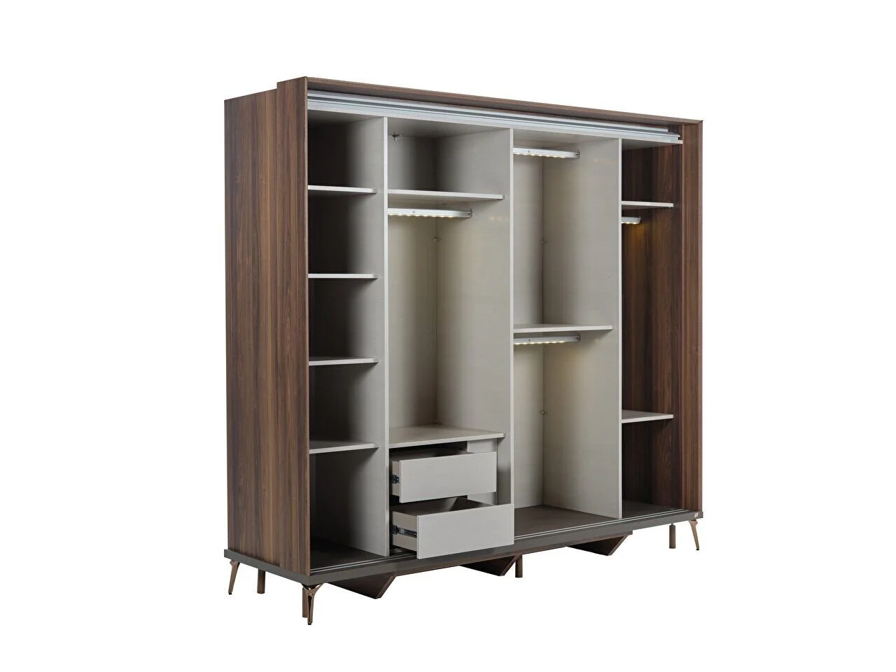 Daca iti doresti un dressing modern cu design italian, atunci gama Vanessa este alegerea perfecta.Un dressing bine organizat trebuie sa aibe atat spatii generoase pentru umerase, cat si rafturi optionale pentru suplimentarea spatiului de depozitare. Este important sa ai spatii de depozitare utile, atat pentru hainele scurte (camasi, sacouri, pantaloni), cat si pentru hainele lungi (rochii, geci), dar si pentru incaltaminte.Sertarele sunt bune organizatoare pentru bijuterii si accesorii, astfel ca le poti include in dressingul tau.