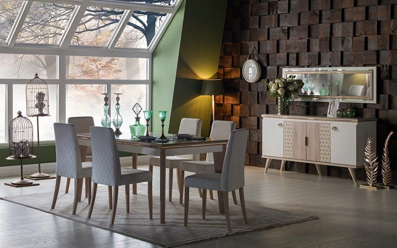 Masa extensibila Elizya  pune accent pe simplitate, abundenţă de linii şi forme cu accesorii clasice tip vintage oferind un aer elegant locuinţei tale.