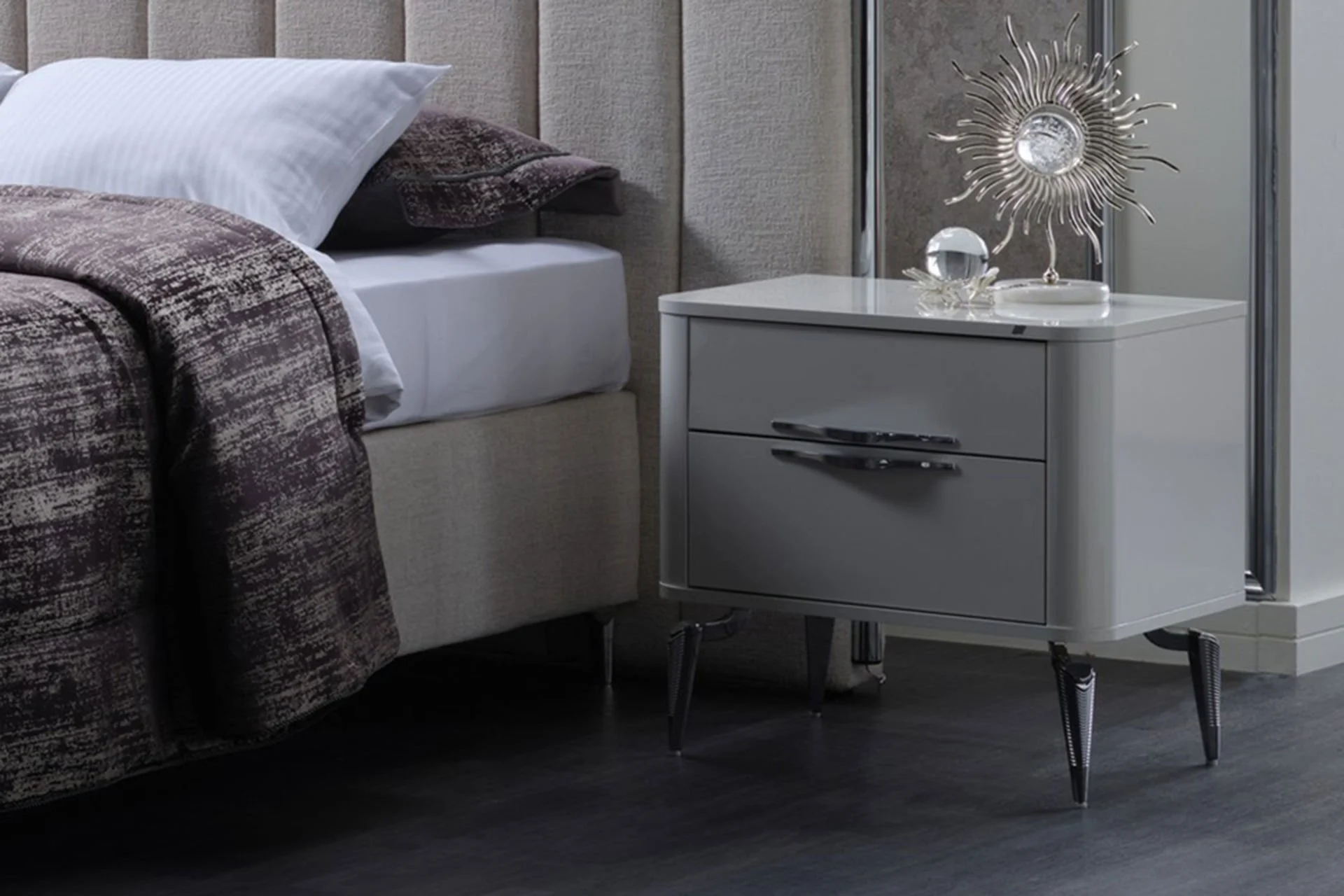Noptiera Aysa iese în evidență prin utilizarea materialului lucios, armoniei cromatice, stilului, detalii care atrag gusturile fine și designul estetic.
