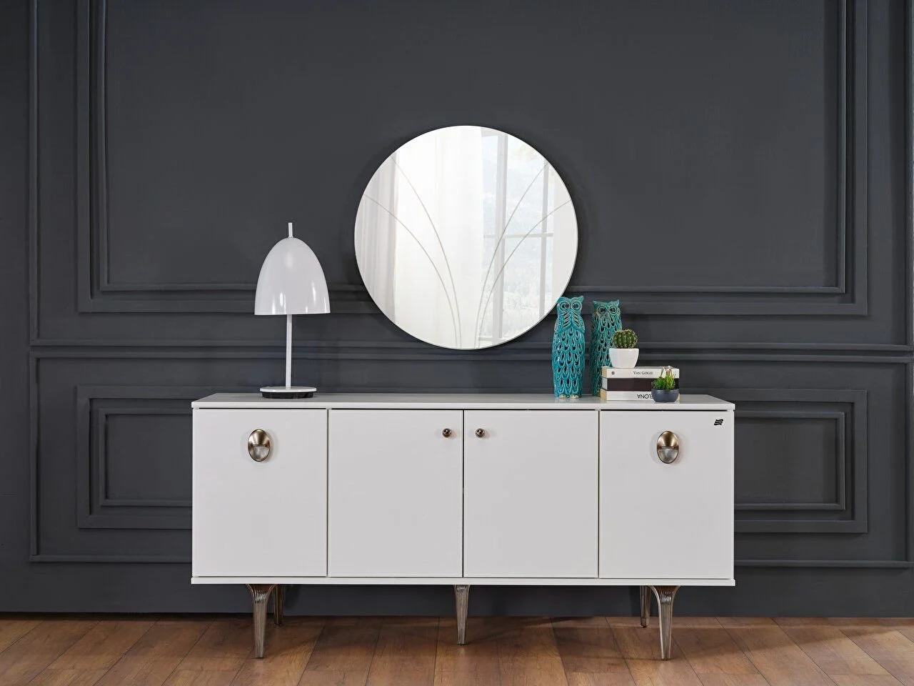 Oglinda Roxy oferă un aspect inspirat de o floare, cu liniile sale subțiri elegante în liniile sale rotunjite. Aceasta oglinda, simbolul elegantei si naturaletii, adauga o nota estetica oricarui spatiu. Produs cu materiale durabile și de înaltă calitate, Roxy oferă, de asemenea, o utilizare practică prin designul său potrivit pentru montarea pe perete. Oglinda Consola Roxy, care poate fi preferata ca element decorativ in diferite zone precum dormitorul, holul de la intrare sau masa de machiaj, adauga o atmosfera unica spatiului dumneavoastra.