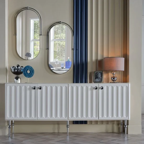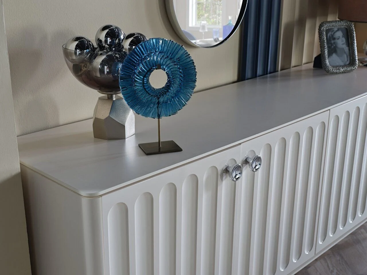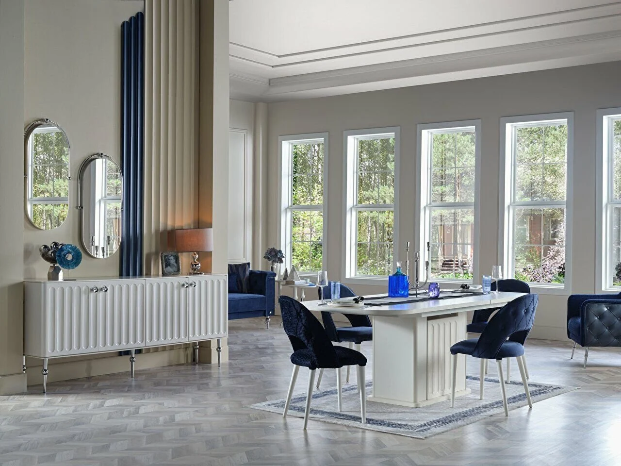 Oglinda consolei confera profunzime incaperii si ii permite sa aiba un aspect stralucitor. Cu scaunele sale care oferă un confort superior, setul de sufragerie vă permite să stați confortabil pentru perioade lungi de timp în timpul meselor și al conversațiilor plăcute. Fiecare dintre produsele setului, care sunt în perfectă armonie între ele, are propria sa structură funcțională. În acest fel, se asigură cea mai mare eficiență din partea echipei.